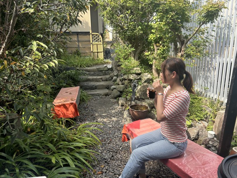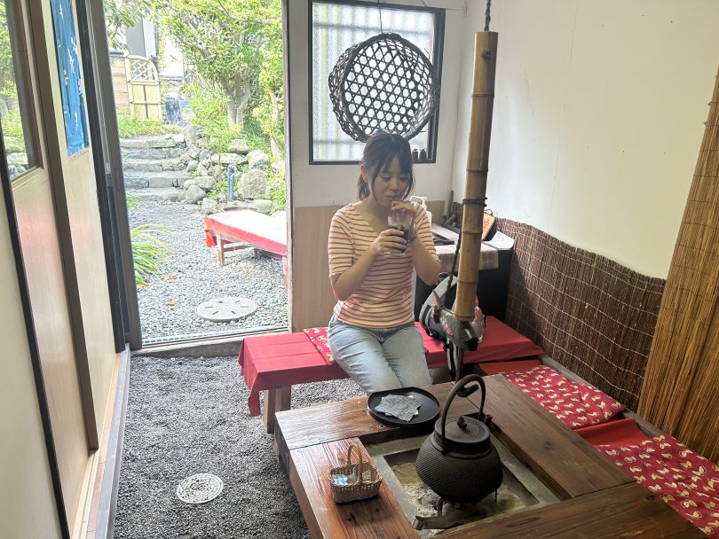 ドリンク注文で囲炉裏や裏庭で休憩できます。