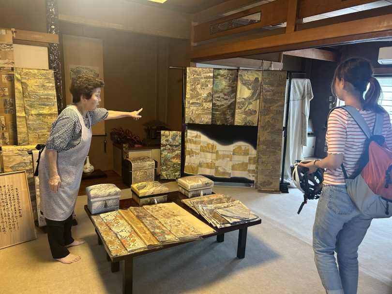 お食事をされた方は、店内に展示されている帯コレクションを見学したり、着物を羽織って写真撮影を楽しむことができます。