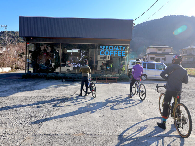 お腹を満たしたところで次なる目的地はカフェ。細い県道64号で軽く一山越えて、国道413号沿いのアマライトコーヒーへ。天気がいいので走っていてもとても快適。そして風景や道もサイコーです。