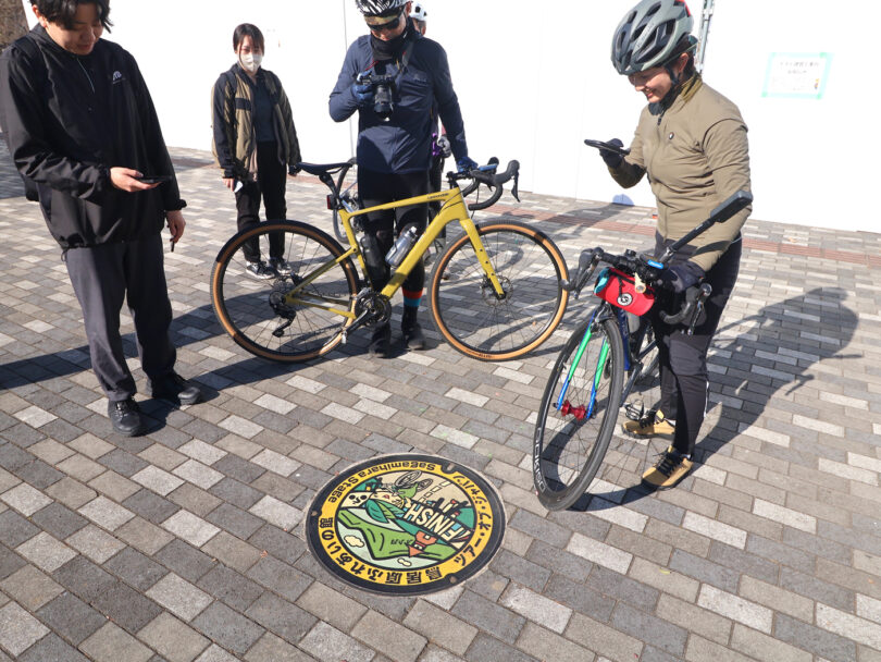 自転車レースTOJ(ツアー・オブ・ジャパン)相模原ステージのゴール地になったことを記念したマンホール蓋を発見。スタート場所近くの橋本公園横には、スタート地点のマンホール蓋もあったらしい