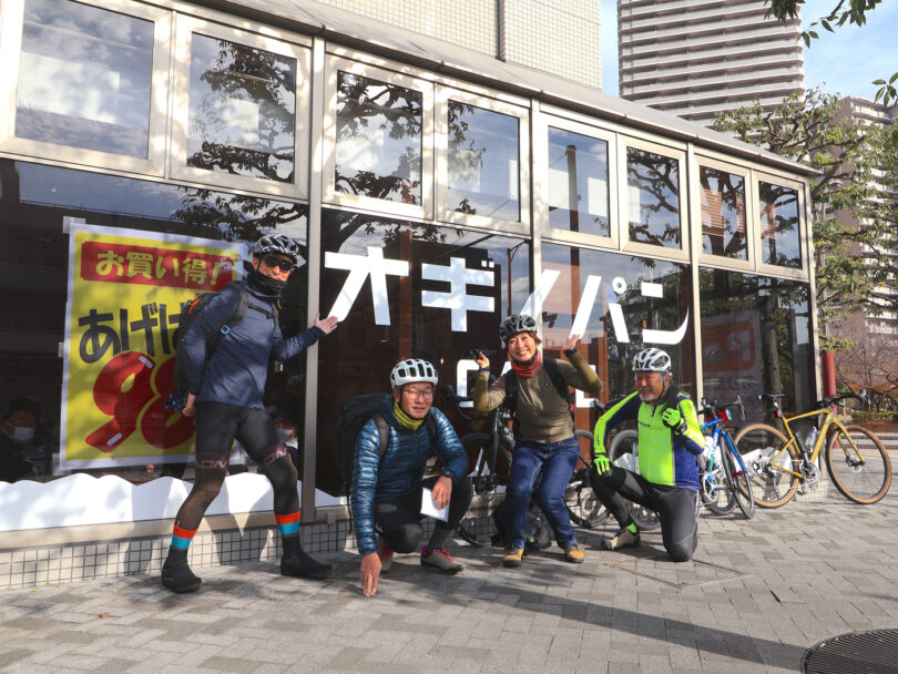 このうちの「相模湖コース」を基本にしたルートを走ってみませんか、という神奈川県からのお誘いに、ルンルンでスタートのオギノパンCAFEに向かいました。そこで待っていたのはインフルエンサーのおおやようこさん、サイクルスポーツ誌の記者としてライター大屋雄一さん、そして日本サイクリングガイド協会のガイドとして佐藤周平さん。これは楽しくなりそうです。