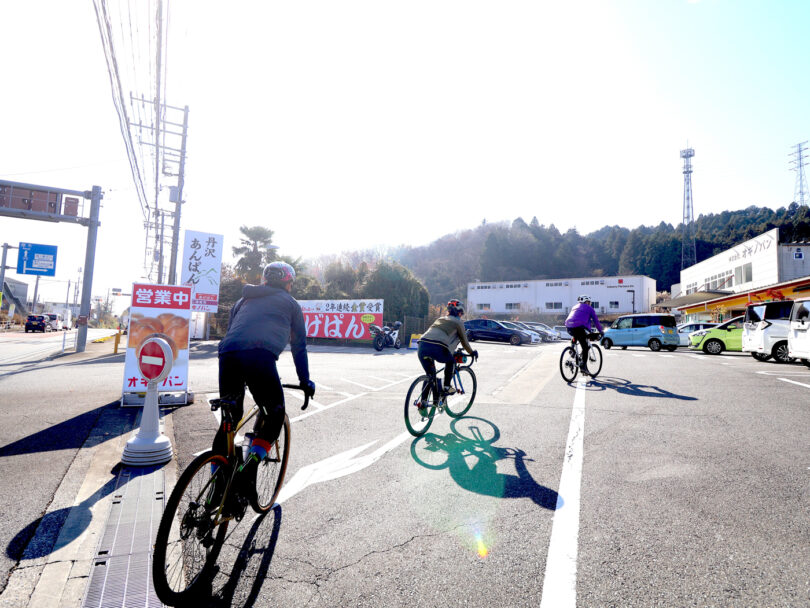 小休止したあと、県道510号を快適に走り、やってきたのはまたオギノパン。ここは本社工場で、ガラス越しの工場見学もできる。津久井湖や宮ヶ瀬湖周辺、そして道志みちを走るサイクリストやオートバイのライダーに大人気の場所。ここでまたのんびり休憩です。
