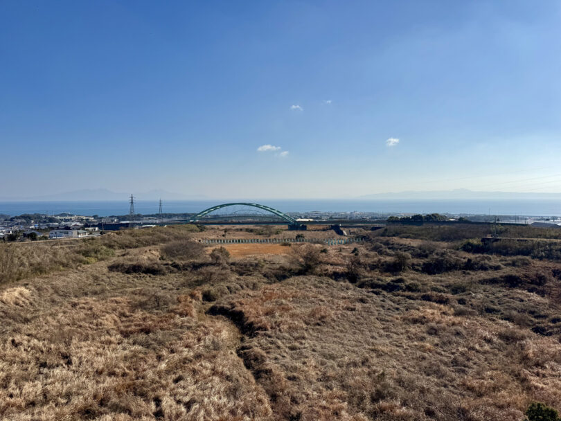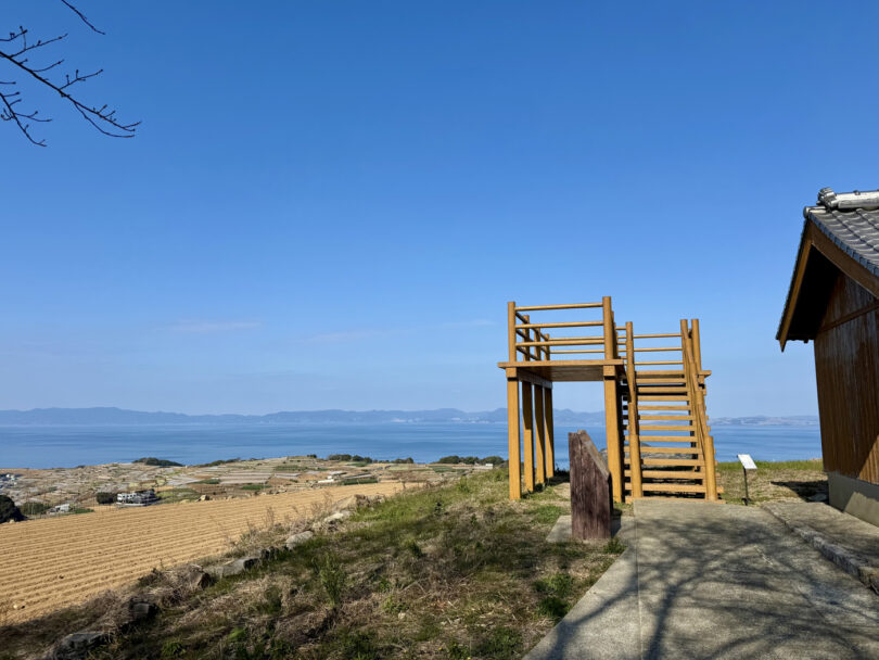 熱々具だくさんの美味しさを堪能したあとは、施設前から「海越しの雲仙岳」を望んで、原城跡へ。