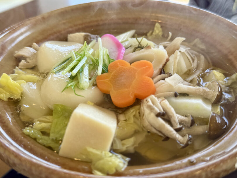 ランチに選んだ南島原の郷土料理「具雑煮(ぐぞうに)」は、江戸時代の「島原の乱」で天草四郎らが約3ヶ月の籠城戦中に、農民から集めた山の幸・海の幸と餅を煮て兵糧としたのが始まりとされています。