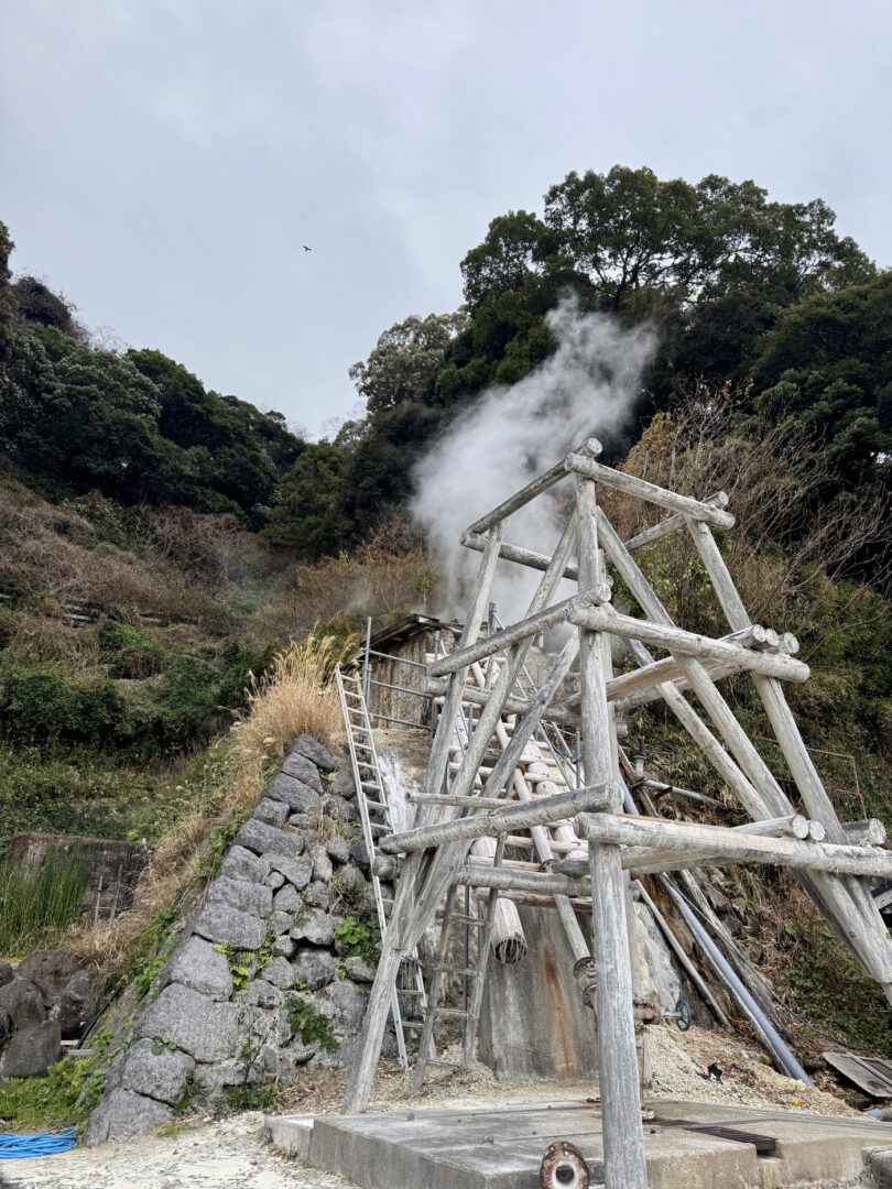 敷地内では、現在も小浜温泉の源泉を間近で見学することができます。