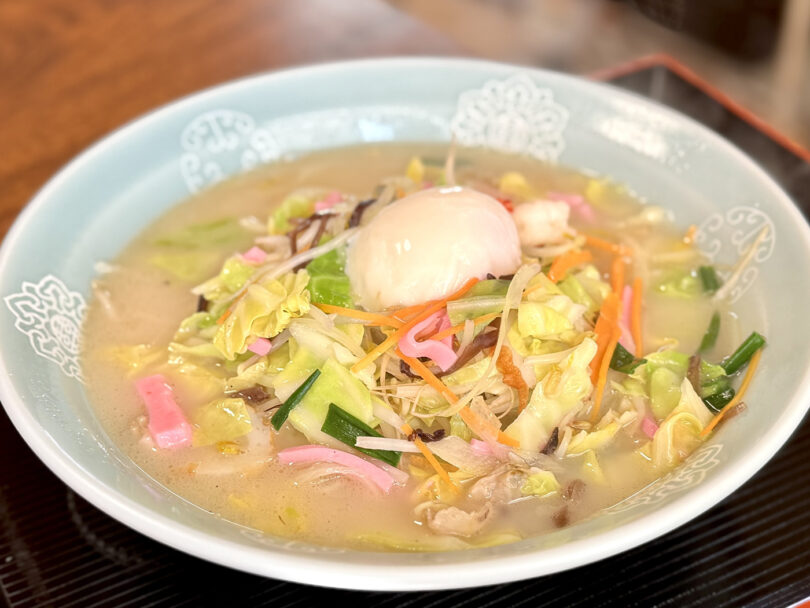 島原ちゃんぽんは、鶏ガラ・豚骨ベースに地元の新鮮な海産物を使った「あっさりコク旨」スープが特徴で、生卵トッピングが定番。豚骨や鶏ガラをベースにした濃厚で白濁したクリーミーなスープが特徴の「長崎ちゃんぽん」とは違った味わいです。