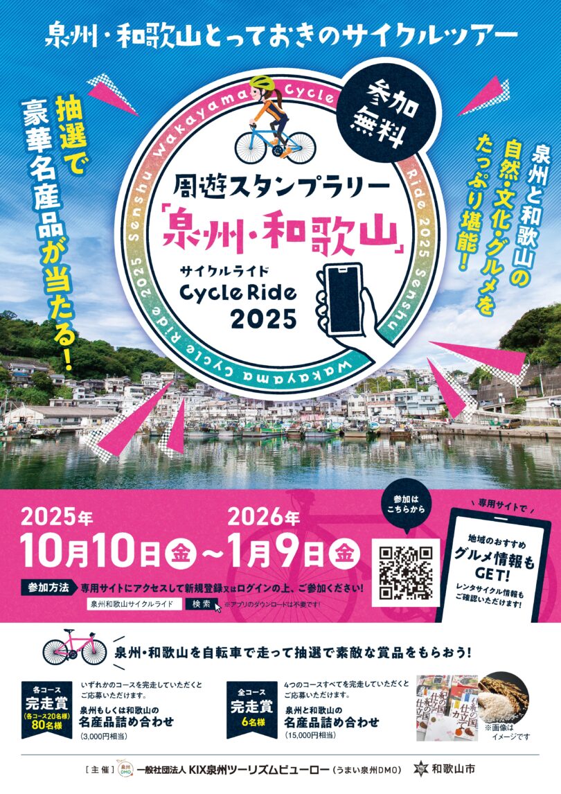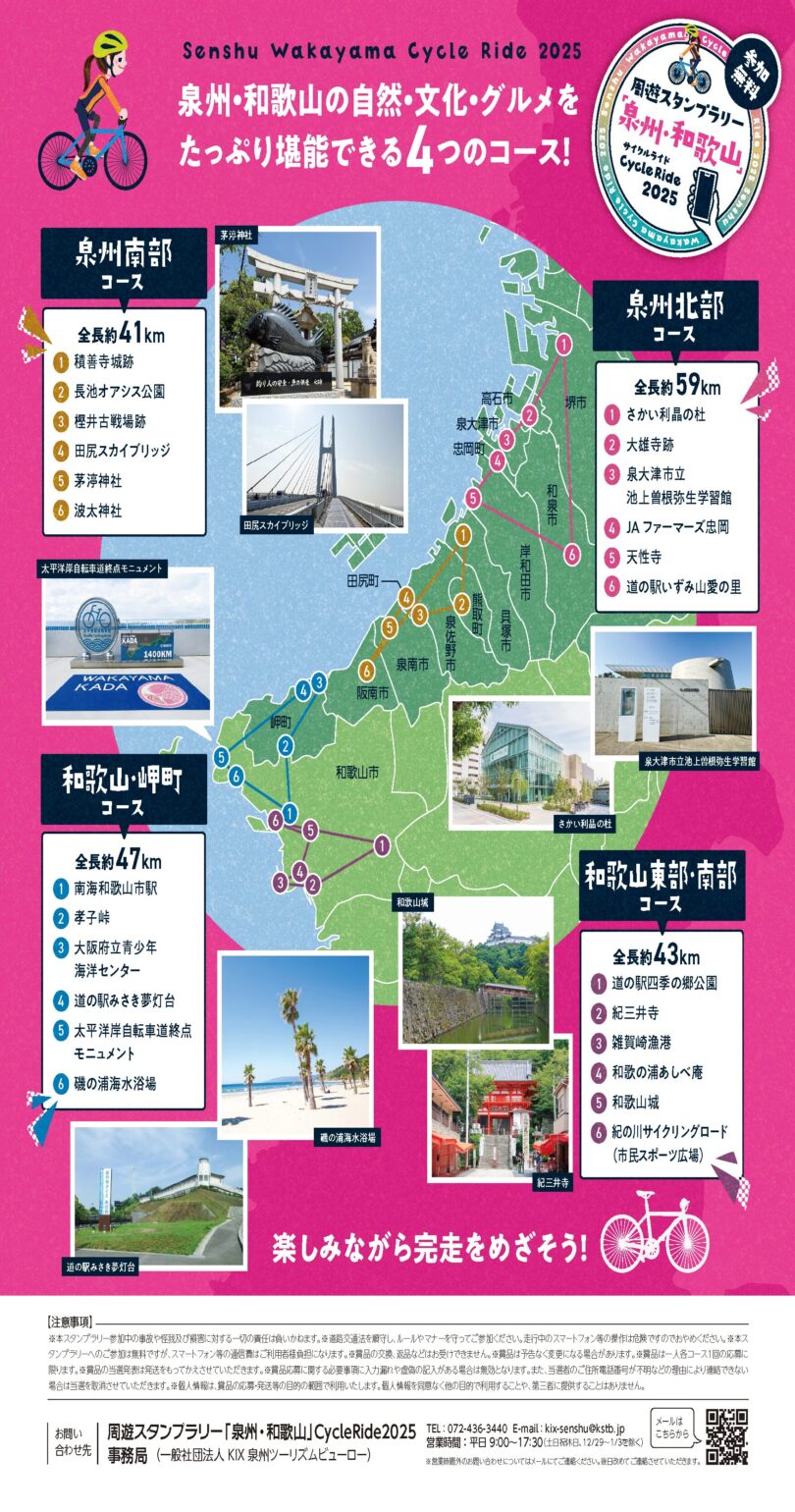 | 問い合わせ先 | 周遊スタンプラリー「泉州・和歌山」CycleRide2025事務局 (一般社団法人KIX泉州ツーリズムビューロー) |