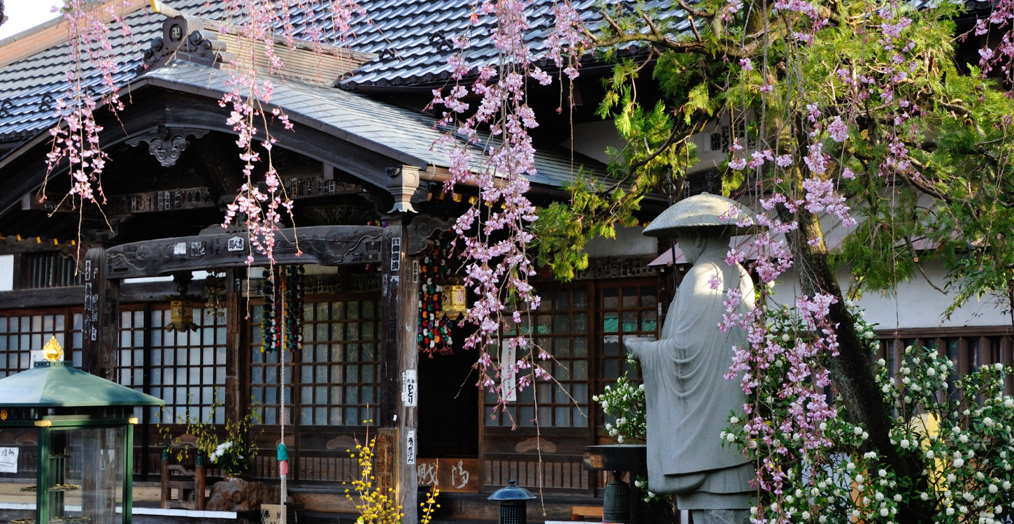 寺名は神の大木がまるで神門のようなことに由来しています。境内に入ると微笑みを浮かべた地蔵尊が温かく迎えてくれます。
